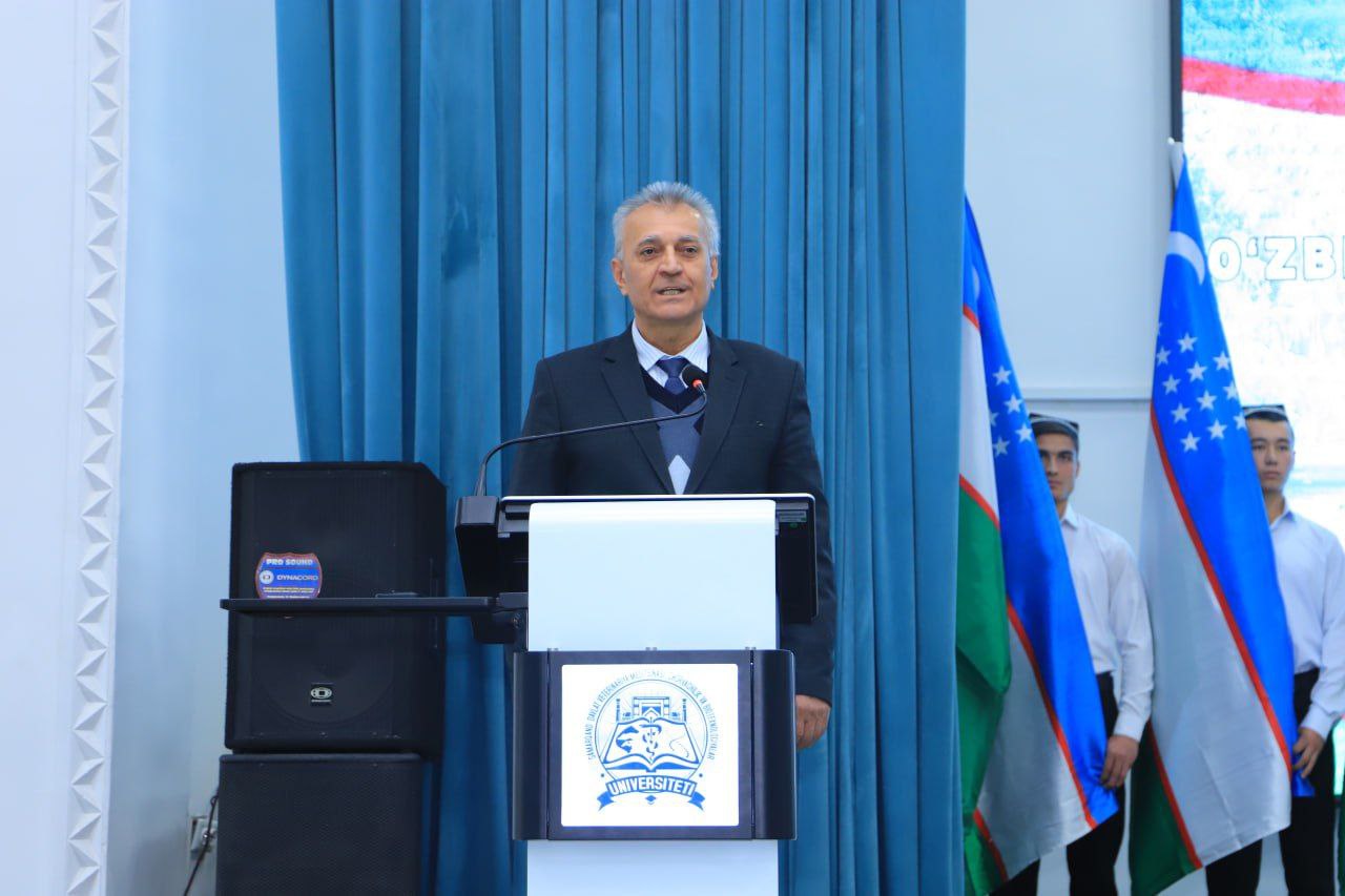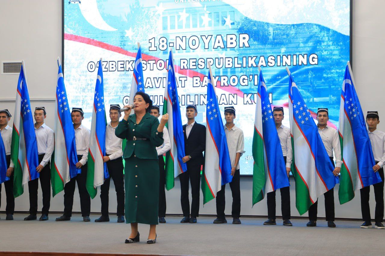Мероприятие, начавшееся с исполнения Государственного гимна, открыл ректор университета, академик Х. Юнусов, который подчеркнул огромную ценность одного из священных символов независимости – Государственного флага, и отметил, что Государственный флаг нашей страны служит укреплению решимости, любви и верности наших соотечественников, особенно молодежи.