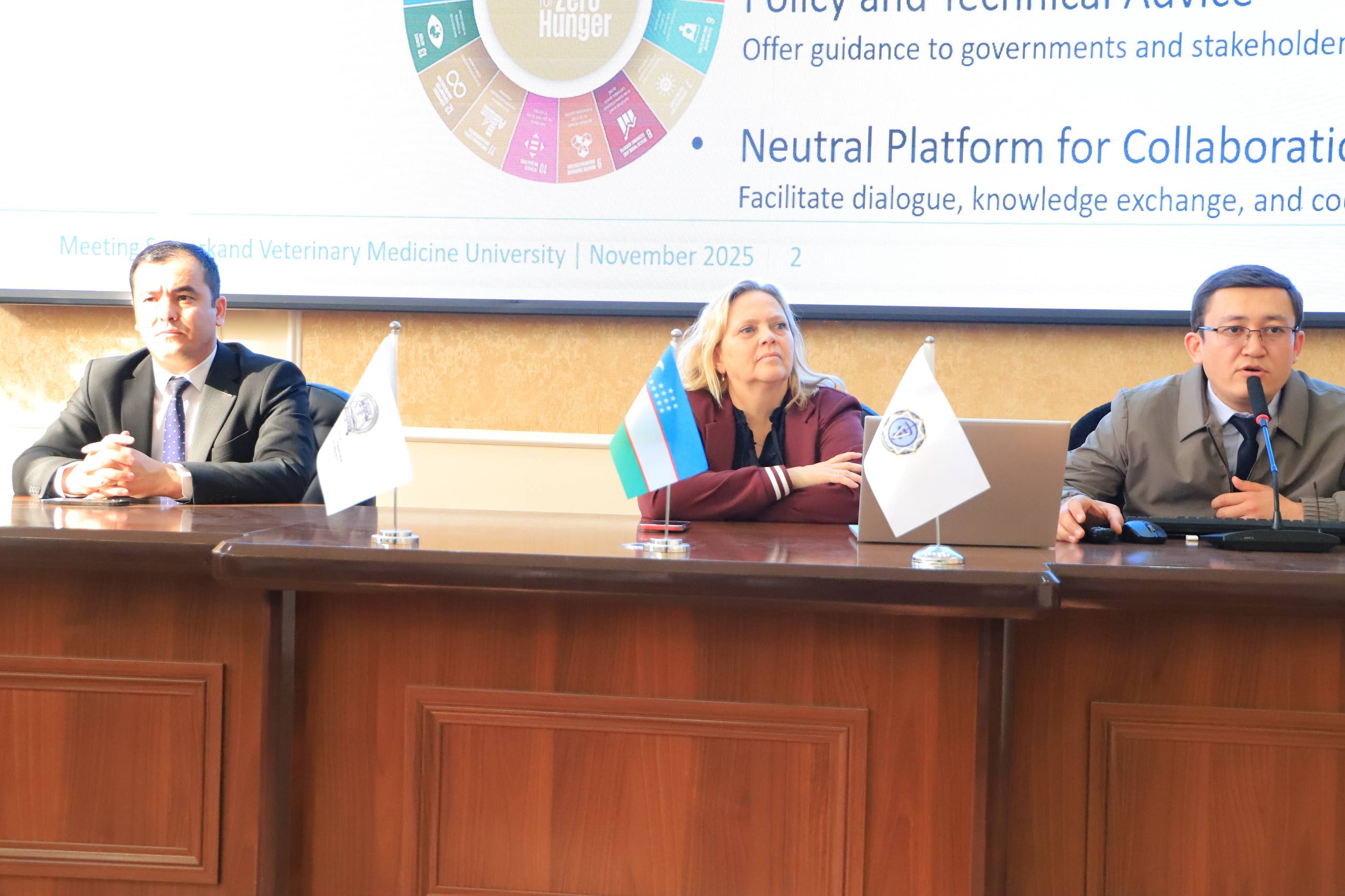 В ходе визита она встретилась с ректором университета и обсудила вопросы сотрудничества. Она также провела открытый диалог со студентами, поделившись ценной информацией о мировых ветеринарных новостях, угрозе устойчивости к противомикробным препаратам и международной практике.