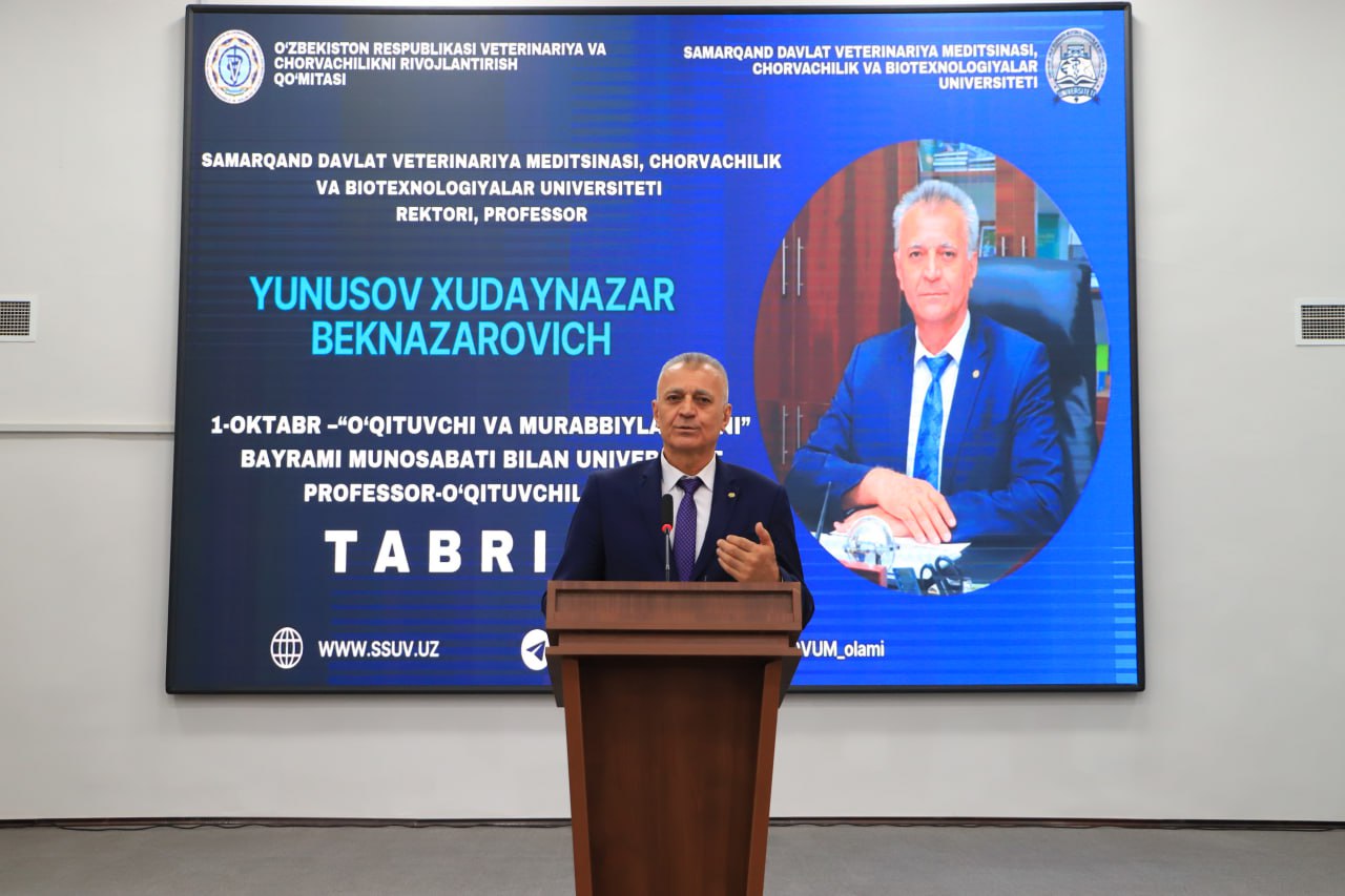 Bayram tadbirda universitet rektori, professor Xudaynazar Yunusov barcha ishtirokchilarni ulug‘ bayram – "1-oktyabr - O‘qituvchi va murabbiylar kuni" bayrami bilan qutladi.