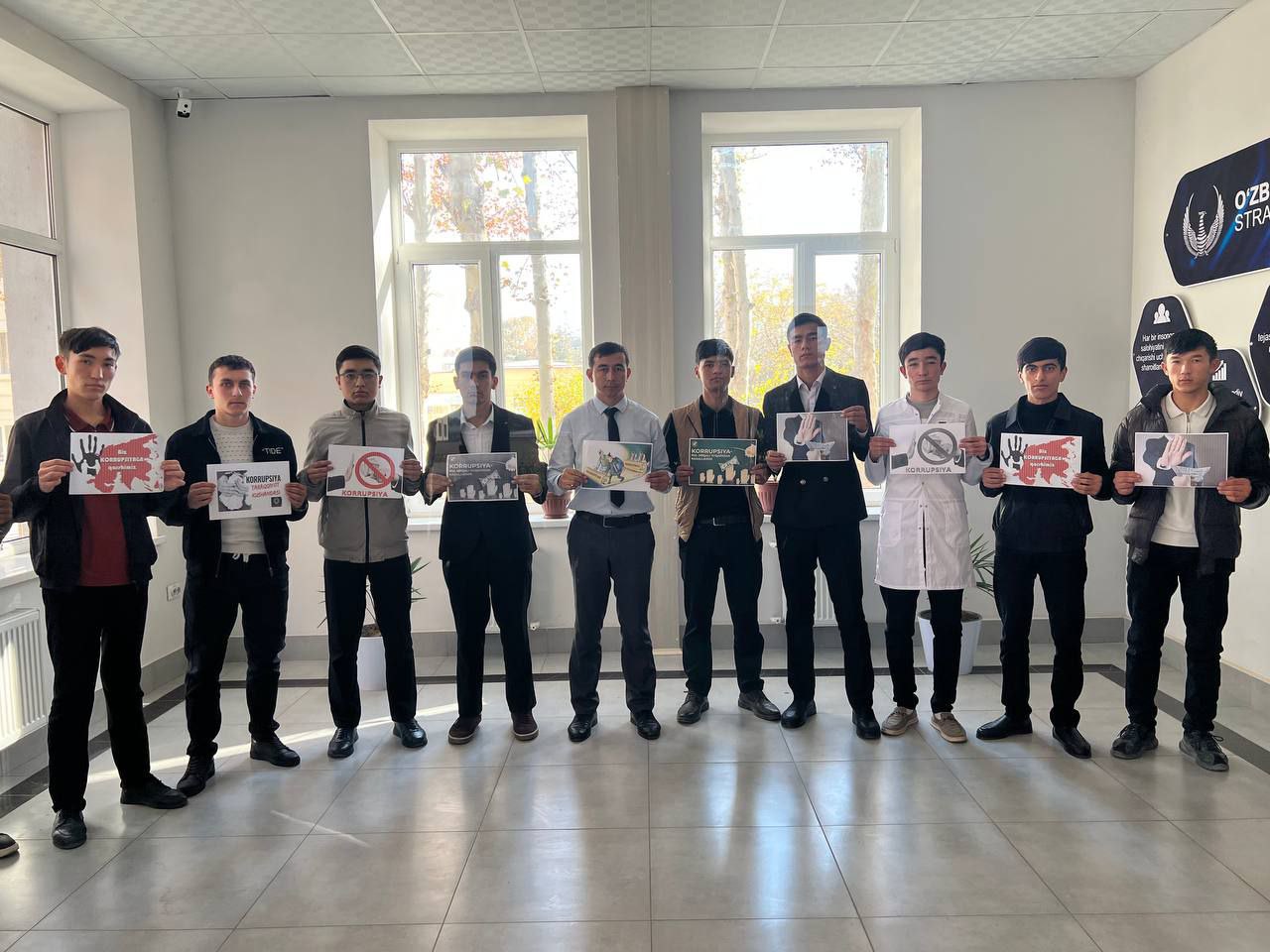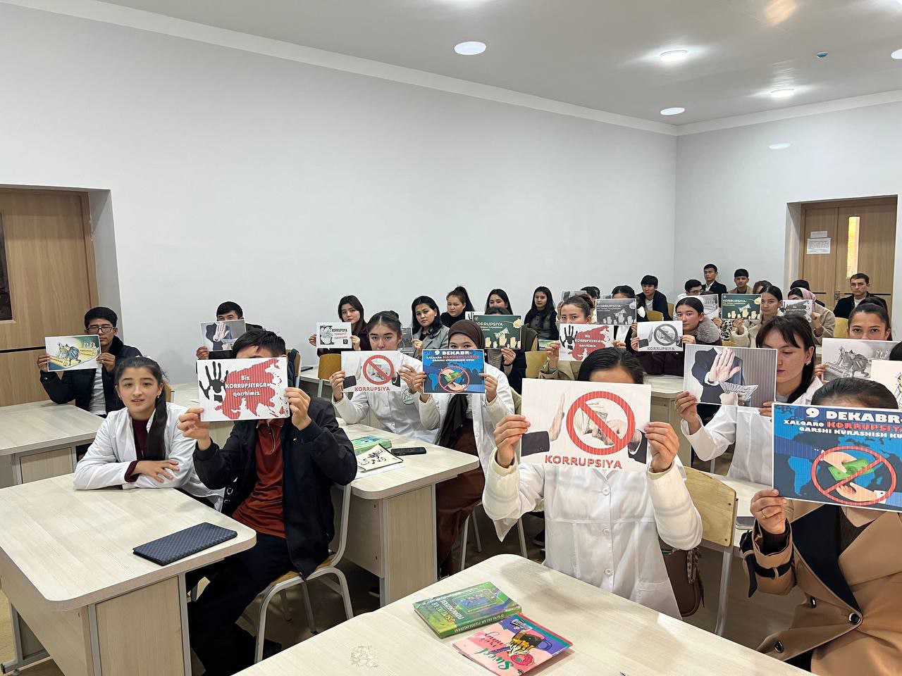“Biz korrupsiyasiz kelajak quramiz” shiori ostida tashkil etilgan ushbu suhbat talabalarda halollik madaniyatini mustahkamlashga, adolatli va porloq kelajak sari dadil qadam tashlashiga xizmat qildi.