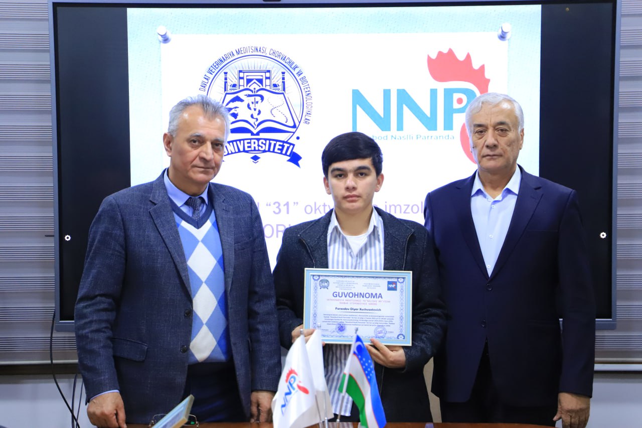 In accordance with clause 3.6 of the Memorandum of Cooperation signed between SamSUVMLB and the “Navobod Naslli Parranda” farm on October 31, 2025, the “Leader Scholarship” was introduced by the “Navobod Naslli Parranda” farm for university students in the 2025-2026 academic year.