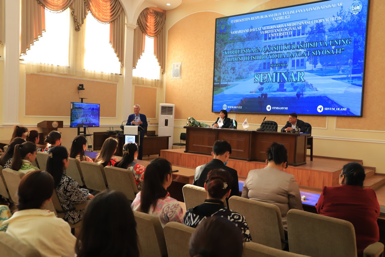 SamDVMCHBUda universitet rektori, akademik Xudaynazar Yunusov, O‘zbekiston Respublikasi Oliy Majlis Qonunchilik palatasi deputati Zebiniso Raxmonova, universitet professor-o‘qituvchilari va talaba-yoshlar ishtirokida “Korrupsiyaga qarshi kurashish va uning oldini olish bo‘yicha davlat siyosati” mavzusida o‘tkazilgan tadbirda ana shu jihatlarga batafsil to‘xtalib o‘tildi.