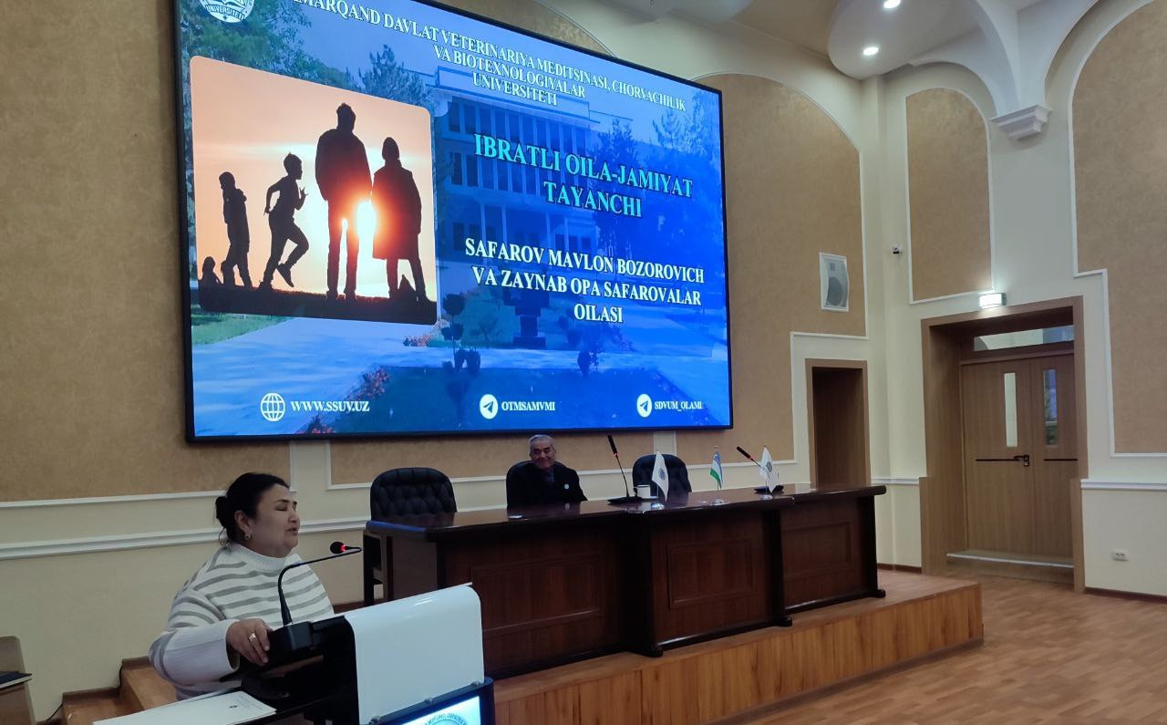 SamDVMCHBUda 4-noyabr kuni Veterinariya profilaktikasi va davolash fakulteti Ichki yuqumsiz kasalliklar kafedrasi dotsenti Mavlon Bozorovich Safarov ishtirokida talaba-yoshlar bilan oilada ota mas’uliyati, farazandlar tarbiyasidagi o‘rni hamda oilada aka, uka va opa-singillar munosabati xususida davra suhbati o‘tkazildi.