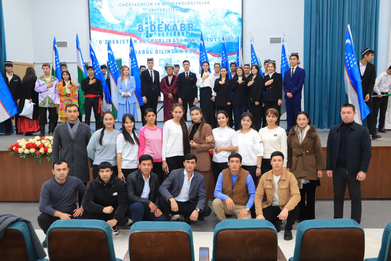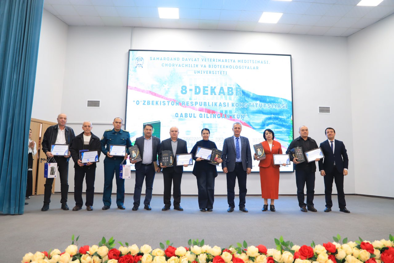 O‘zbekiston Respublikasi Konstitutsiyasining 33 yilligi munosabati bilan Samarqand davlat veterinariya meditsinasi, chorvachilik va biotexnologiyalar universitetida yuksak ruhda o‘tkazilgan ma’naviy-ma’rifiy tadbir davlatimiz Konstitutsiyasining jamiyat hayotidagi o‘rni va ahamiyatini keng targ‘ib qilishga qaratildi. Tadbirning asosiy g‘oyasi — “Konstitutsiya – inson qadri, erkinlik, tenglik va adolat garovi!” — asosiy tamoyillarni o‘zida mujassam etgan holda, xodimlarimizni qonun ustuvorligi g‘oyasi atrofida birlashtirishga xizmat qildi.