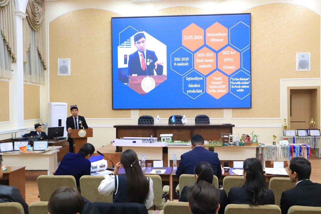 Tanlovni tanlov komissiyasi raisi, universitet rektori, akademik Xudaynazar Yunusov ochib berib, ishtirokchi talabalarga omad tiladi.
